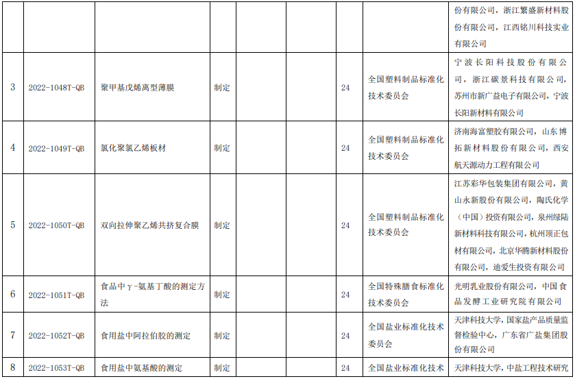 2022年第二批其他標(biāo)準(zhǔn)項(xiàng)目計(jì)劃表