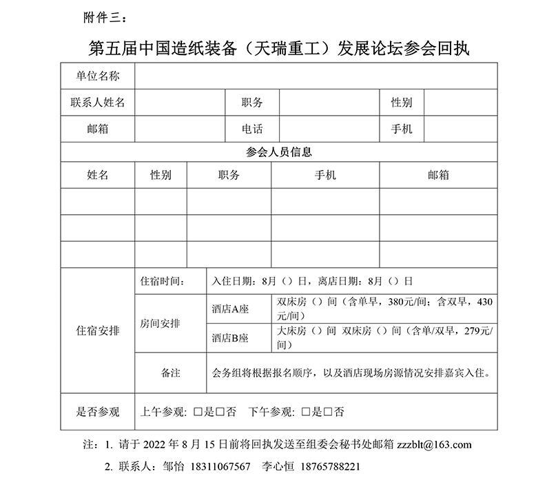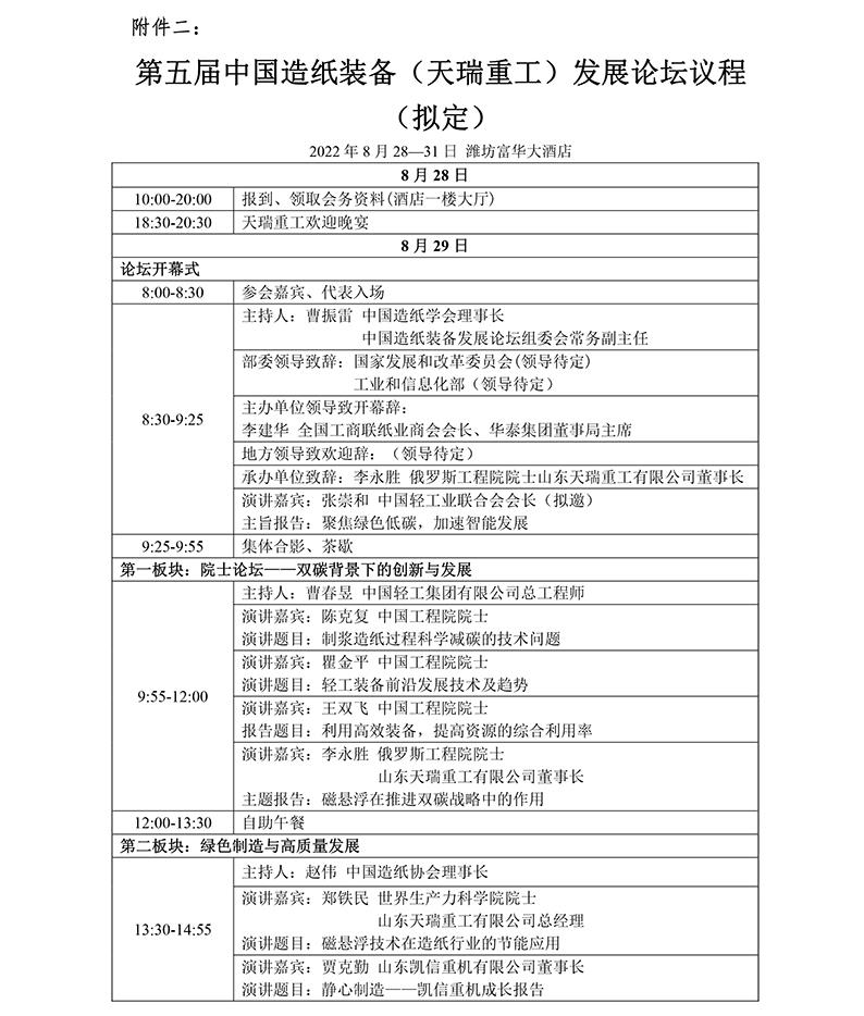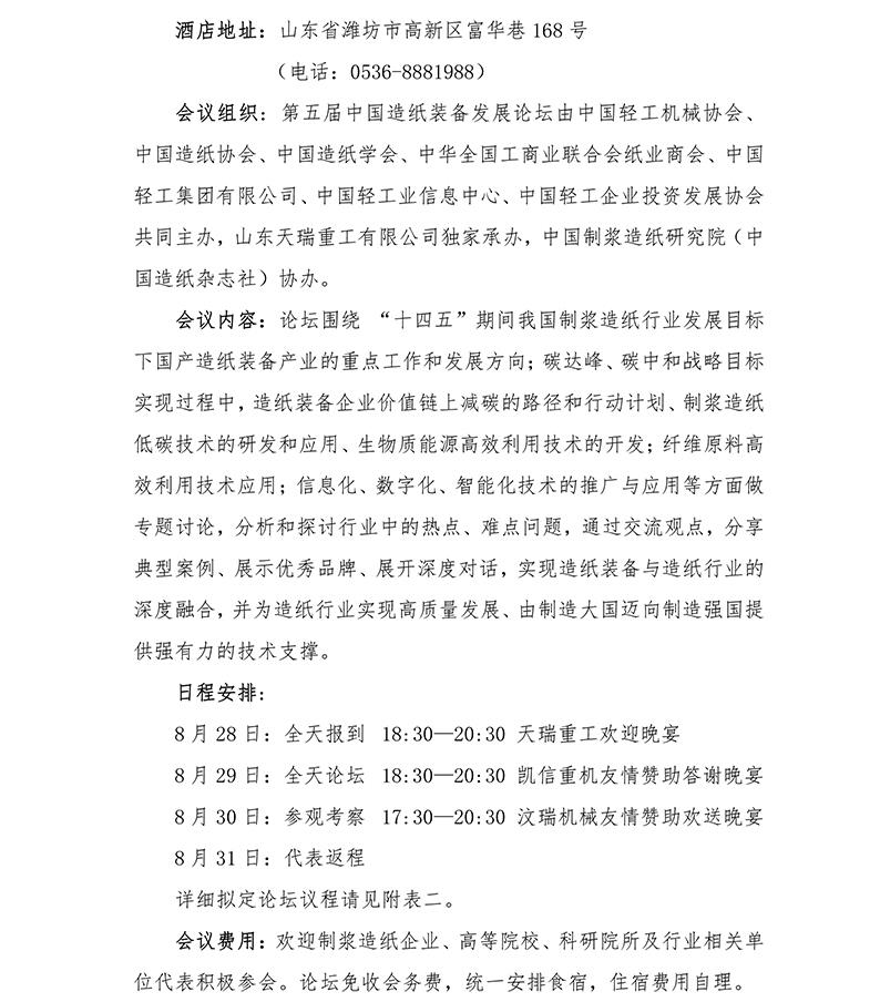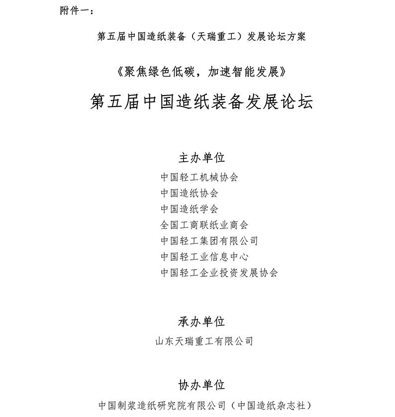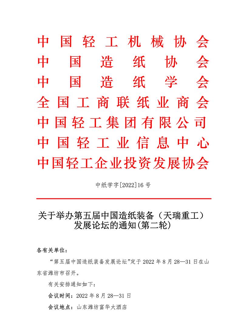 關(guān)于舉辦第五屆中國造紙裝備(天瑞重工) 發(fā)展論壇的通知(