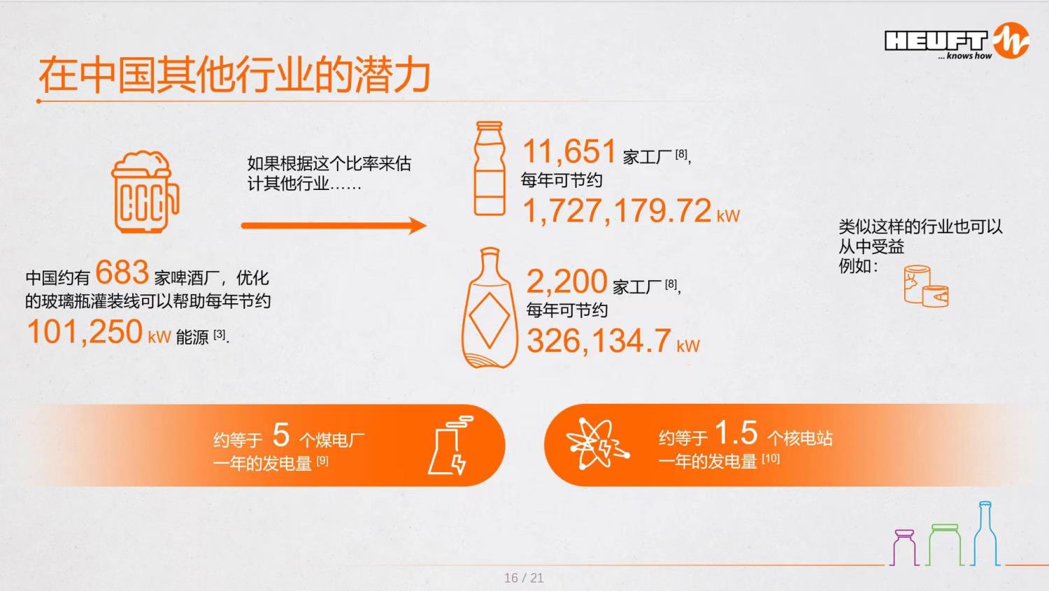 協(xié)會(huì)綜合業(yè)務(wù)部主任趙越通過PPT的形式,介紹了協(xié)會(huì)概況及開展的工作。Jürgen Kurz總監(jiān)也以“用智能技術(shù)提高玻璃瓶灌裝線的脫碳和生產(chǎn)效率”為題,介紹了海富公司的智能化輸送解決方案在低碳節(jié)能方面的科研成果和做出的成績。他表示智能技術(shù)應(yīng)用在中國的潛力很大,智慧工程設(shè)計(jì)能夠?yàn)槠髽I(yè)節(jié)約40%的材料并精化生產(chǎn)線布局,節(jié)約占地面積,優(yōu)化的玻璃瓶灌裝線每年可以節(jié)約大量能源。