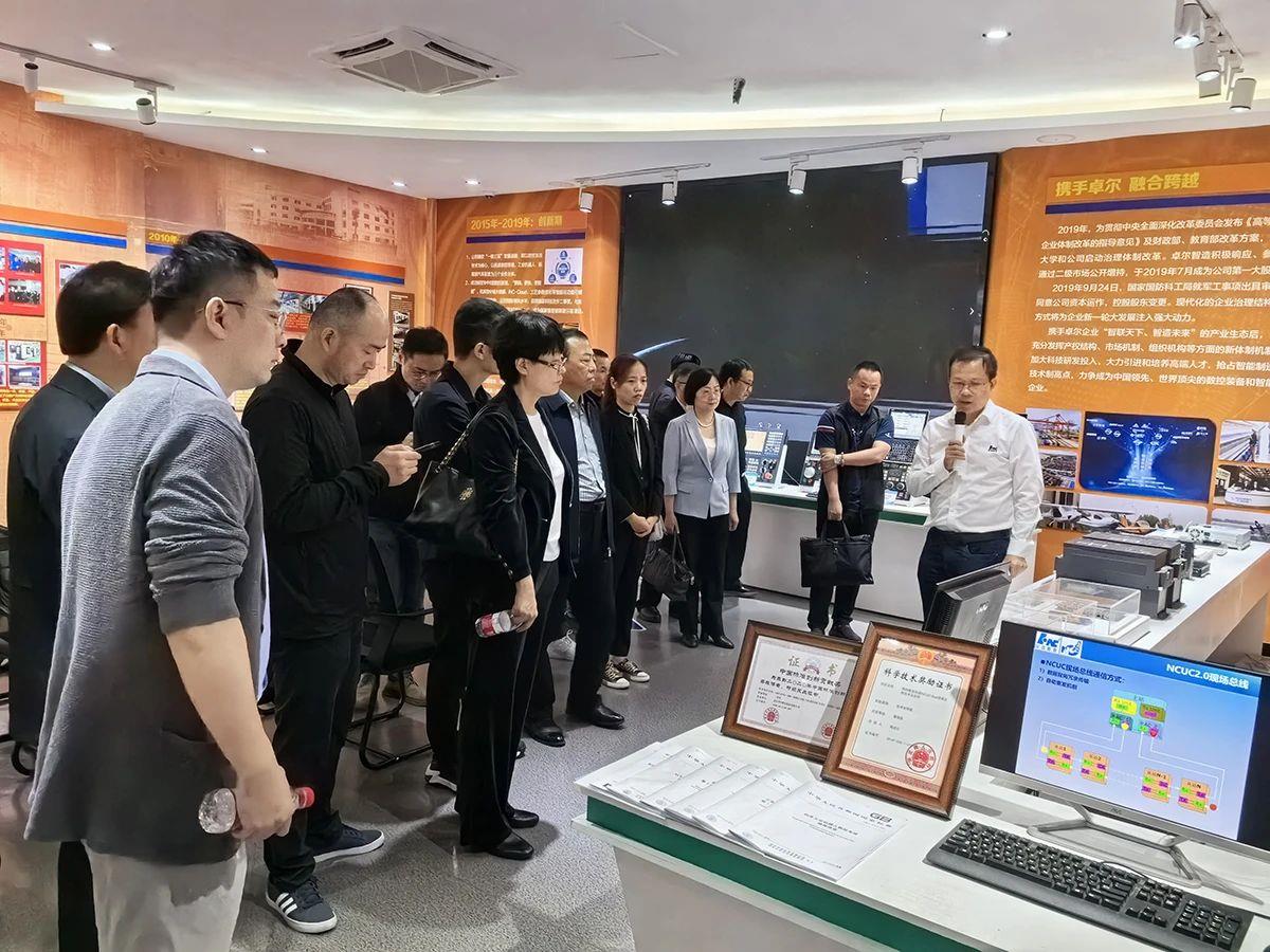 王欣一行首先參觀了華中數(shù)控公司的展示廳,田茂勝總裁向王欣一行介紹了華中數(shù)控公司的發(fā)展歷程、華中數(shù)控具有自主知識產(chǎn)權(quán)的8型數(shù)控系統(tǒng)、工業(yè)機(jī)器人、伺服電機(jī)、新一代人工智能數(shù)控系統(tǒng)、紅外熱像儀等產(chǎn)品的研發(fā)過程和產(chǎn)業(yè)化發(fā)展情況。田茂勝總裁陪同王欣一行參觀了SMT生產(chǎn)車間、機(jī)電聯(lián)調(diào)車間。