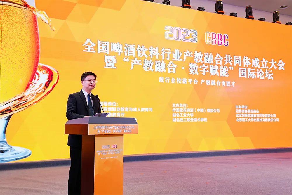 12月8日,全國啤酒飲料行業(yè)產(chǎn)教融合共同體成立大會在武漢召開。全國啤酒飲料行業(yè)產(chǎn)教融合共同體在教育部職業(yè)教育與成人教育司、湖北省教育廳、高校畢業(yè)生就業(yè)協(xié)會、中國酒業(yè)協(xié)會和中國輕工機(jī)械協(xié)會的指導(dǎo)下,在華潤雪花啤酒(中國)有限公司、湖北工業(yè)大學(xué)、湖北輕工職業(yè)技術(shù)學(xué)院的牽頭主辦下成立。在成立大會上,湖北省教育廳二級巡視員何澤云、湖北輕工職業(yè)技術(shù)學(xué)院黨委書記徐兵、湖北工業(yè)大學(xué)副校長龔發(fā)云等領(lǐng)導(dǎo)參加并致詞,中國輕工機(jī)械協(xié)會副理事長兼秘書長王欣出席了成立大會并致辭。大會由湖北輕工職業(yè)技術(shù)學(xué)院黨委副書記、院長夏光蔚主持。
