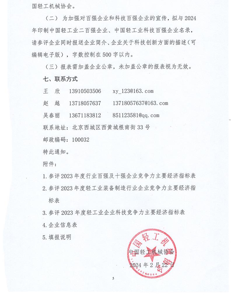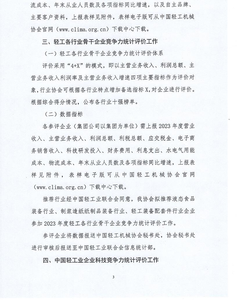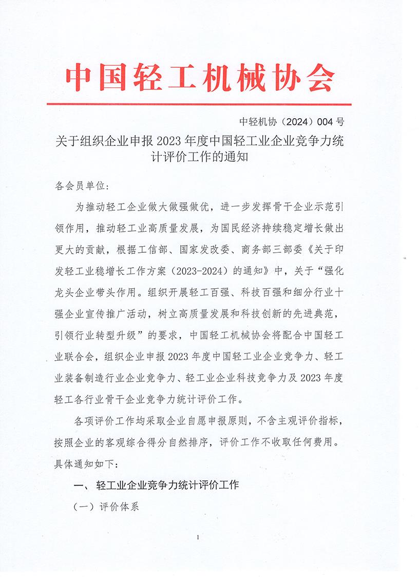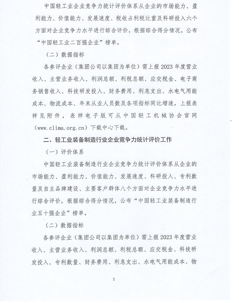 關于組織企業(yè)申報2023年度中國輕工業(yè)企業(yè)競爭力統(tǒng)計評價工作的通知