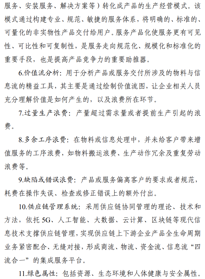 二是實(shí)現(xiàn)企業(yè)供應(yīng)鏈管理精益化。明確精益供應(yīng)鏈的主要內(nèi)容,提出消除供應(yīng)鏈各環(huán)節(jié)浪費(fèi)、推動(dòng)供應(yīng)鏈全鏈條流程優(yōu)化、健全標(biāo)準(zhǔn)化供應(yīng)鏈體系等3條具體措施。