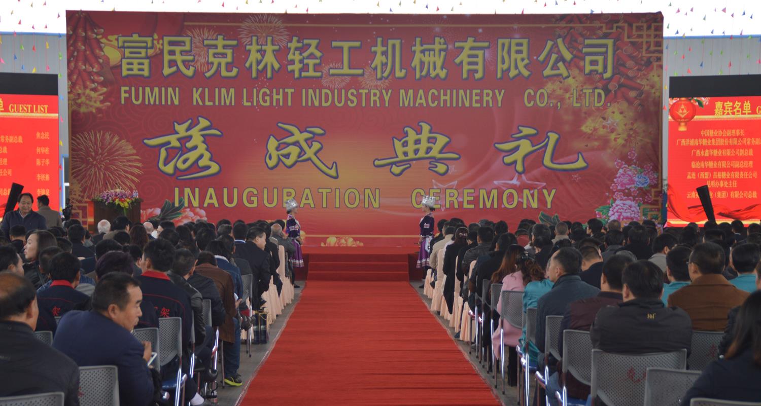 2015年12月4日,昆明克林輕工機械有限責任公司新的加工生產基地——富民克林輕工機械有限公司落成慶典在昆明市富民縣富民克林輕工機械有限公司舉行。中國輕工業(yè)聯(lián)合會副會長杜同和、昆明市、富民縣領導、中國輕工機械協(xié)會副理事長兼秘書長王欣、中國輕工機械協(xié)會食品裝備分會秘書長邵冀生等出席了落成慶典。出席慶典的還有昆明克林公司的國內外合作單位、國內外用戶的代表,企業(yè)老員工代表,新廠建設單位代表等近300人。