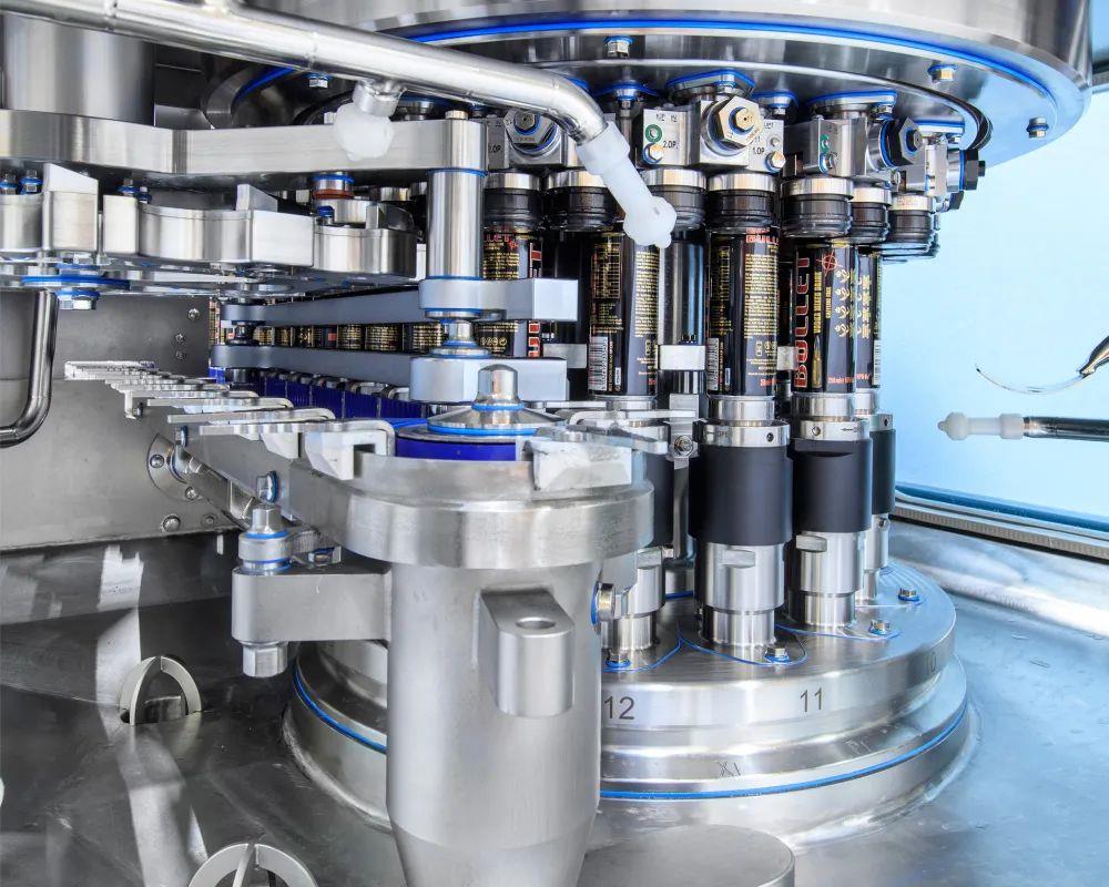 SmartCan對(duì)破泡和蓋底吹掃裝置進(jìn)行了改良。破泡裝置被巧妙地移入產(chǎn)品區(qū),與后續(xù)吹掃環(huán)節(jié)緊密銜接,有效縮短了易拉罐的行程路徑。吹掃環(huán)節(jié)則采用了創(chuàng)新的線性吹掃設(shè)計(jì),使二氧化碳的能耗下降了近20%,實(shí)現(xiàn)低碳生產(chǎn)的顯著成效。同時(shí),SmartCan展現(xiàn)出了優(yōu)異的低維護(hù)特性。設(shè)備的維護(hù)時(shí)間間隔從原先的3,500小時(shí)/次,大幅延長(zhǎng)至7,000小時(shí)/次,顯著降低維護(hù)頻率與成本。SmartCan整機(jī)采用伺服驅(qū)動(dòng)方式,確保設(shè)備的高速、平穩(wěn)運(yùn)行。高精度的流量計(jì)控制灌裝方式,為灌裝容量的準(zhǔn)確性提供了堅(jiān)實(shí)的保障,并有效減少了復(fù)雜機(jī)械連接所帶來的磨損和維護(hù),進(jìn)一步提升了設(shè)備的穩(wěn)定性和耐用性。