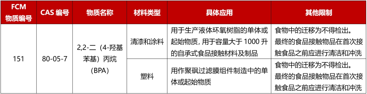 使用其他雙酚或雙酚衍生物制造的食品接觸材料和物品中不得殘留BPA。