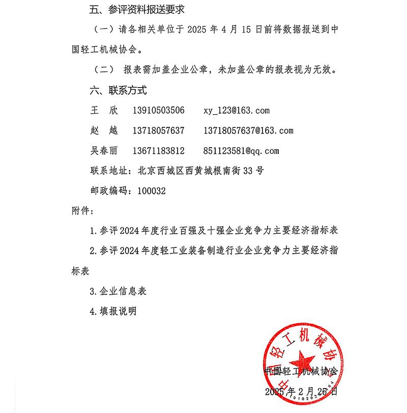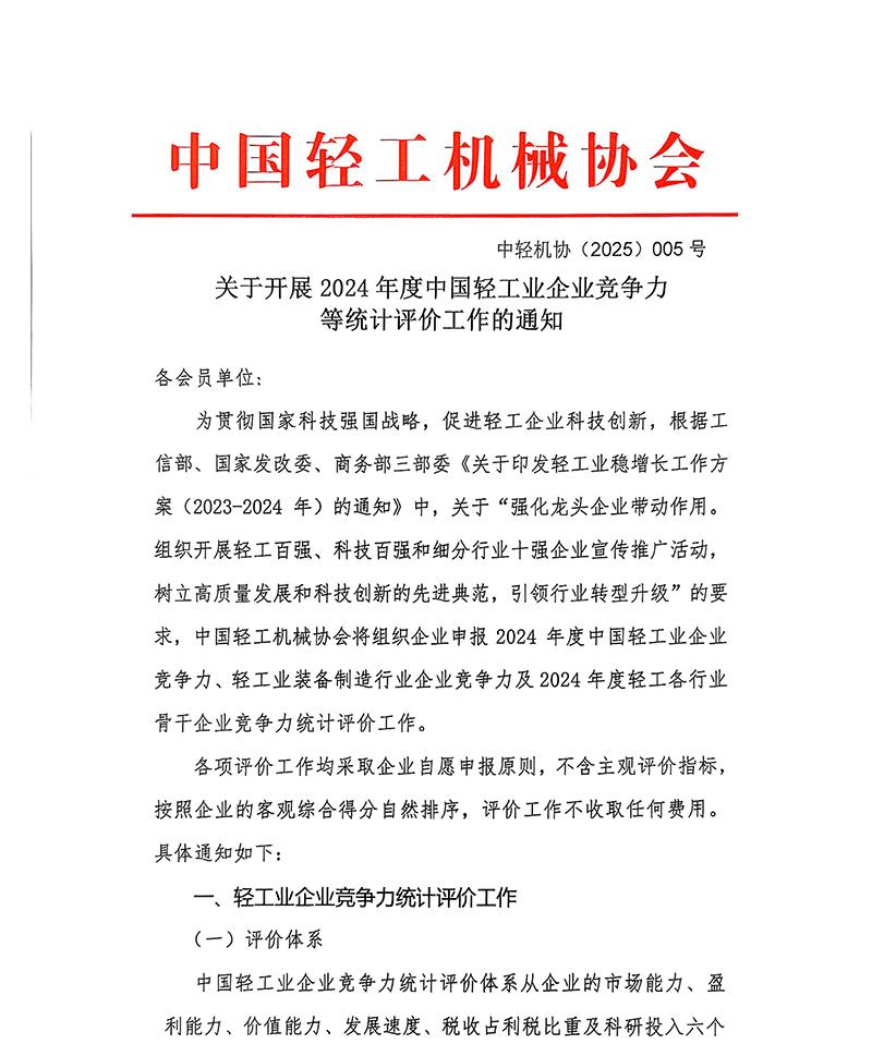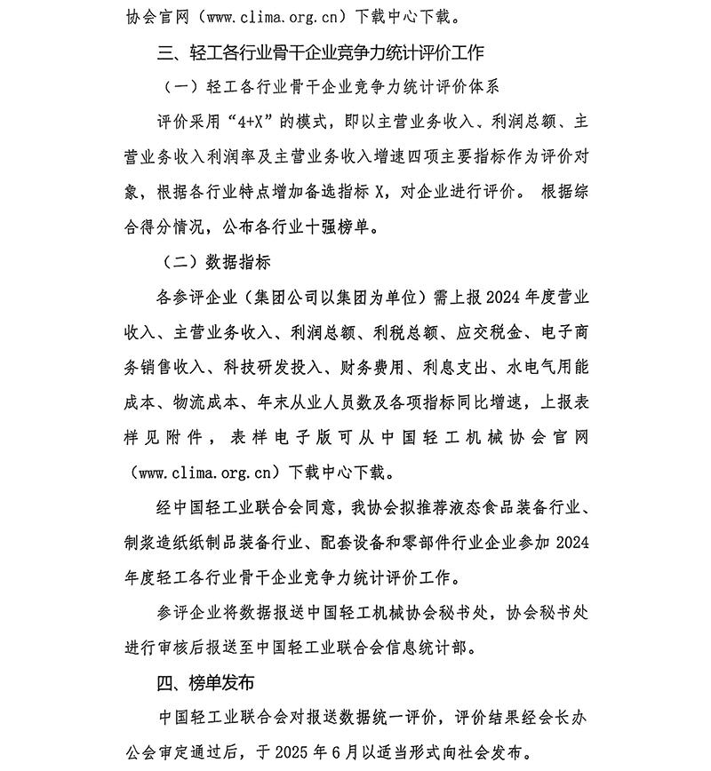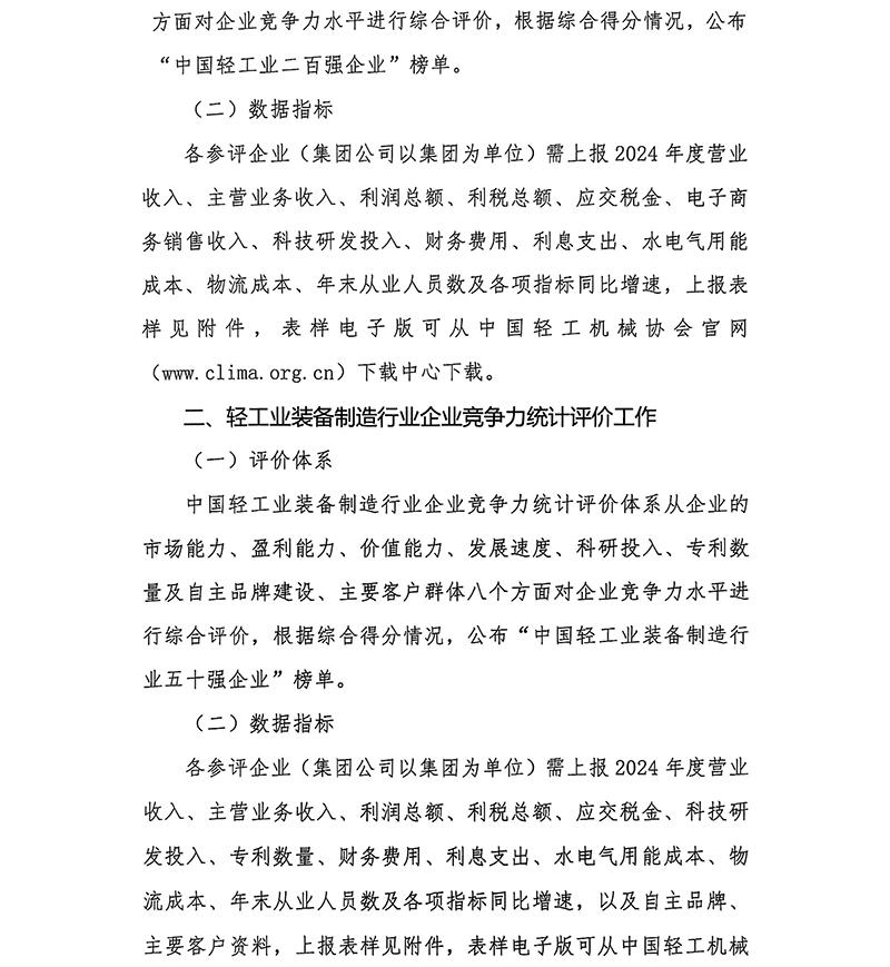 關于開展2024年度中國輕工業(yè)企業(yè)競爭力等統(tǒng)計評價工作的通知
