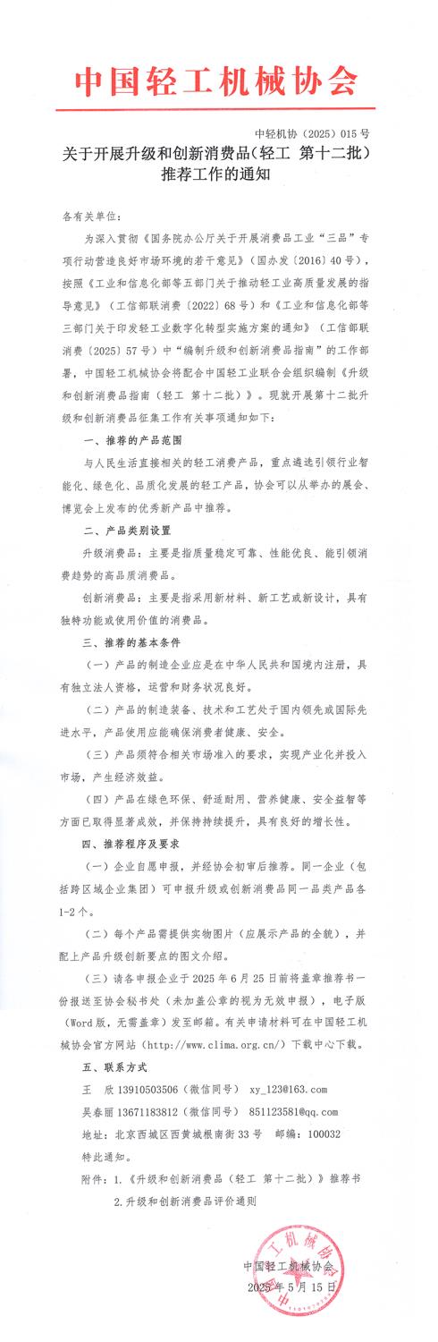 關(guān)于開展升級(jí)和創(chuàng)新消費(fèi)品(輕工 第十二批)推薦工作的通知