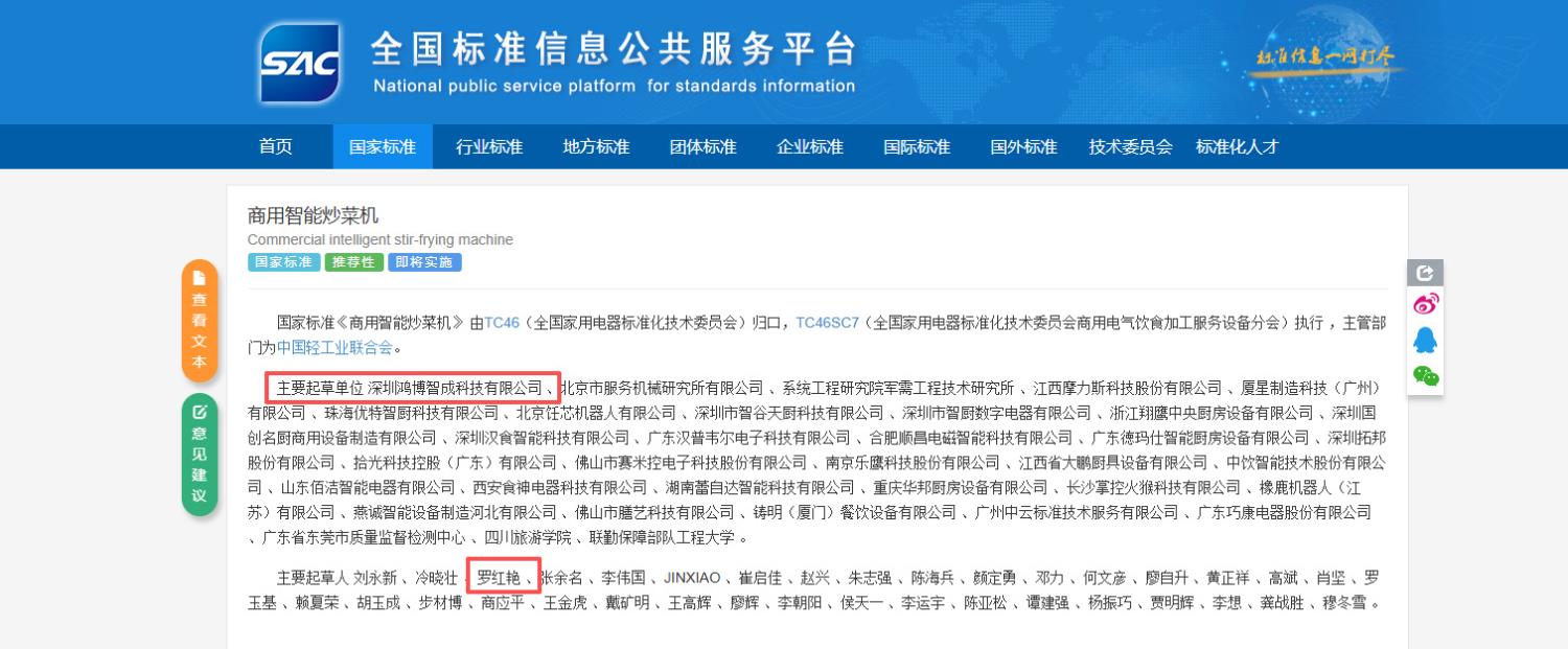 作為該國家標(biāo)準(zhǔn)的主要牽頭起草單位,深圳鴻博智成科技有限公司是國家級高新技術(shù)企業(yè)、國家專精特新小巨人企業(yè),同時也是國標(biāo)委服務(wù)機(jī)器人專項組成員單位。公司自2016年成立以來,始終專注于AI智慧飲食科技的研發(fā)與應(yīng)用,在高精度溫控、多樣化烹飪模式、菜品標(biāo)準(zhǔn)化等核心技術(shù)上取得突破,擁有逾百項國家專利。