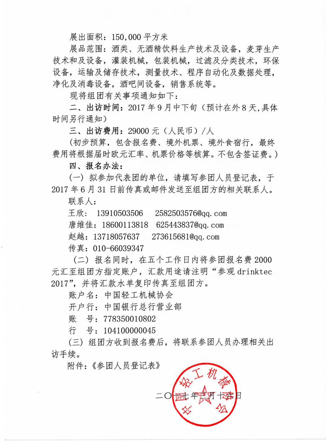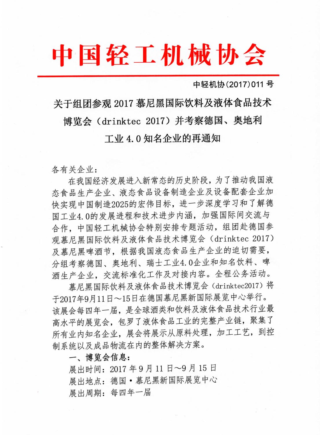 關(guān)于組團(tuán)參觀2017慕尼黑國際飲料及液體食品技術(shù)博覽會(huì)(drinktec 2017)并考察德國、奧地利工業(yè)4.0知名企業(yè)的通知