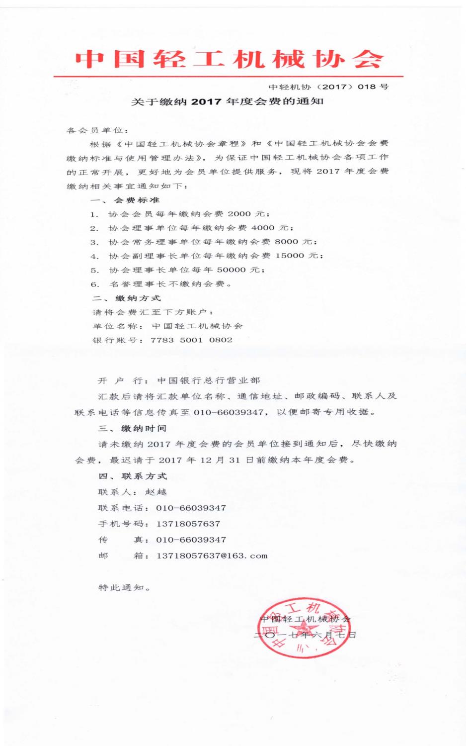 關(guān)于繳納2017年度會(huì)費(fèi)的通知