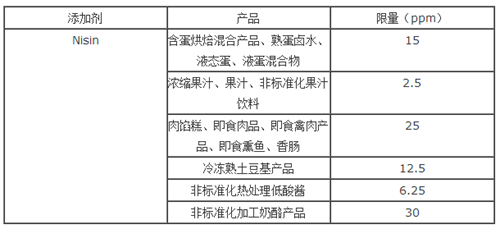 Nisin使用范圍和限量如下: