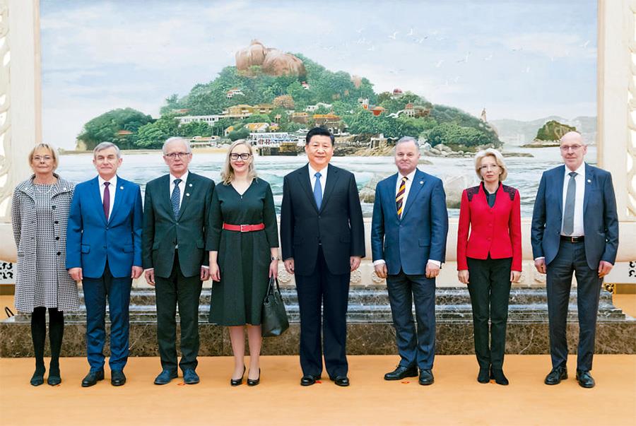 國(guó)家主席習(xí)近平10日在人民大會(huì)堂集體會(huì)見北歐和波羅的海國(guó)家議會(huì)領(lǐng)導(dǎo)人。芬蘭議長(zhǎng)洛赫拉、挪威議長(zhǎng)托馬森、冰島議長(zhǎng)西格富松、愛沙尼亞議長(zhǎng)內(nèi)斯托爾、拉脫維亞議長(zhǎng)穆爾涅采、立陶宛議長(zhǎng)普蘭茨凱蒂斯、瑞典第一副議長(zhǎng)芬內(nèi)等參加會(huì)見。