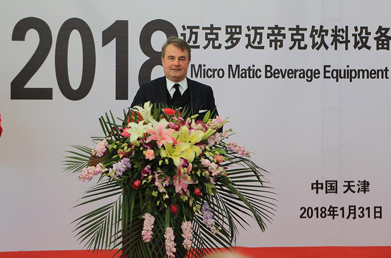 邁克羅·邁帝克飲料設(shè)備(天津)有限公司董事總經(jīng)理莫頓先生主持此次典禮,并對到場的各位領(lǐng)導(dǎo)和朋友表示了歡迎。天津市武清區(qū)招商局副局長杜贏濤先生,武清開發(fā)區(qū)總公司副總經(jīng)理郎聰女士,邁克羅·邁帝克首席執(zhí)行官S?ren Vilby先生,丹麥大使館食品、農(nóng)業(yè)和漁業(yè)部長Christian Dehlholm先生,邁克羅·邁帝克全球銷售總監(jiān)Andre Thix 先生分別致辭并為新工廠剪彩!