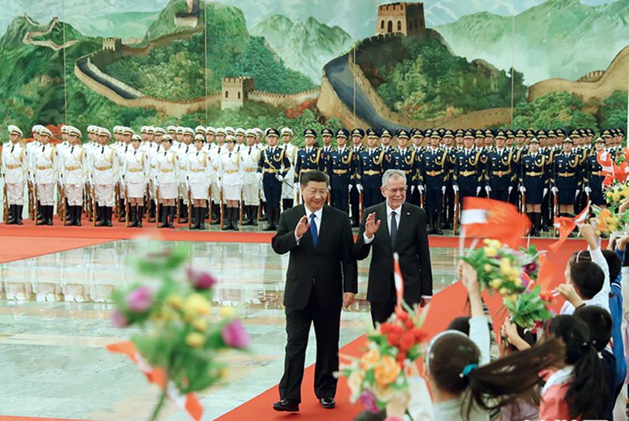 習(xí)近平歡迎范德貝倫首次來(lái)華進(jìn)行國(guó)事訪問(wèn)并出席博鰲亞洲論壇年會(huì)。習(xí)近平指出,總統(tǒng)先生率庫(kù)爾茨總理及多位部長(zhǎng)組成的高級(jí)別大型代表團(tuán)訪華,在中奧交往史上尚屬首次,充分體現(xiàn)了總統(tǒng)本人及奧地利政府對(duì)發(fā)展中奧關(guān)系的高度重視??偨y(tǒng)先生還將到中國(guó)人民英雄紀(jì)念碑前敬獻(xiàn)花圈,體現(xiàn)了對(duì)中國(guó)人民的尊重和友好情誼。奧地利是中國(guó)在歐洲的重要合作伙伴。中奧兩國(guó)都具有悠久歷史和燦爛文化,兩國(guó)人民彼此懷有友好感情。庫(kù)爾茨總理領(lǐng)導(dǎo)的奧地利新一屆政府將積極發(fā)展對(duì)華關(guān)系和“一帶一路”倡議首次寫入執(zhí)政協(xié)議,中方對(duì)此表示贊賞。中方愿同奧方一道,共同挖掘和釋放兩國(guó)合作潛能,播撒更多友誼與合作的種子,更好造福兩國(guó)人民。