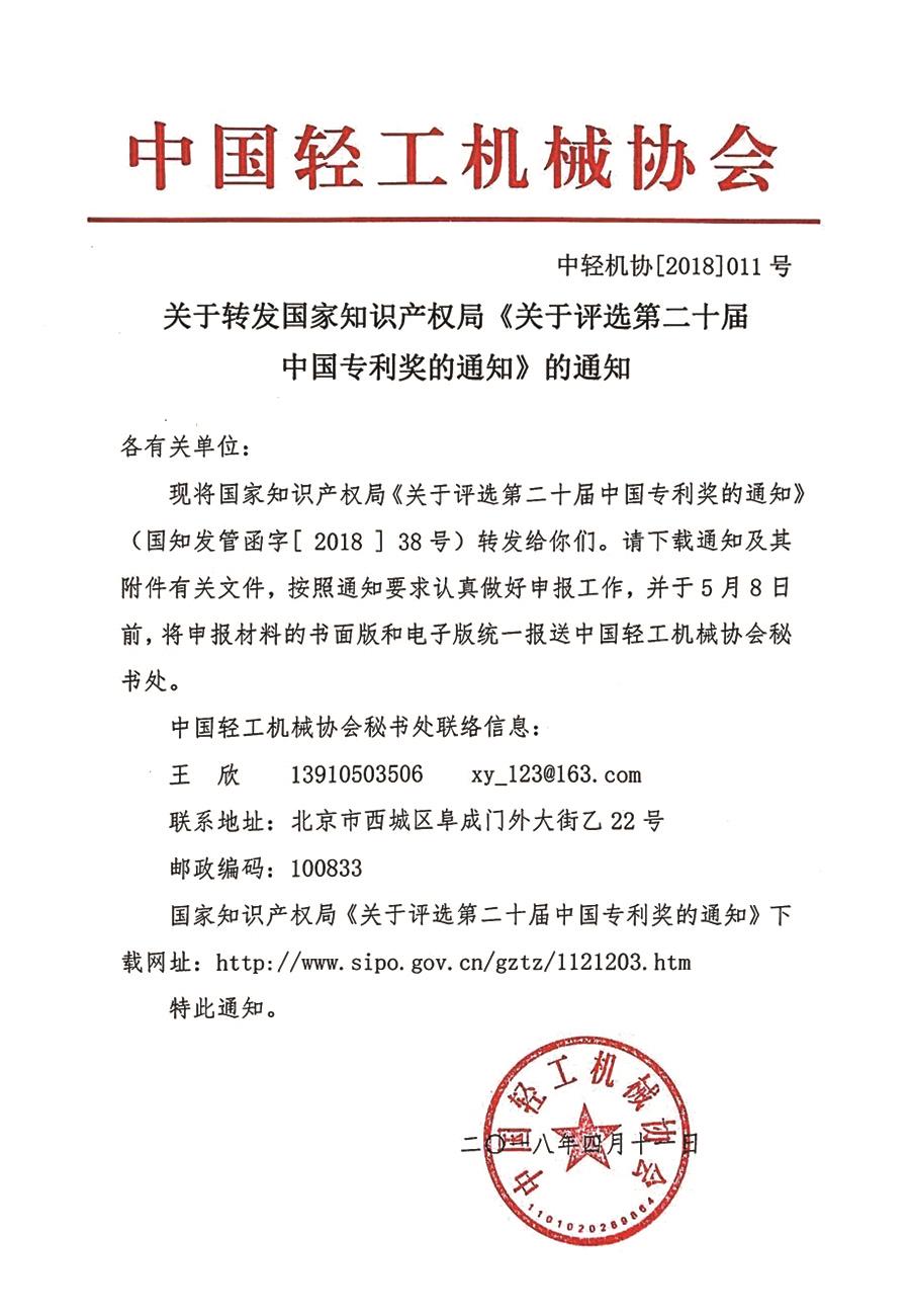 關(guān)于轉(zhuǎn)發(fā)國家知識(shí)產(chǎn)權(quán)局《關(guān)于評(píng)選第二十屆中國專利獎(jiǎng)的通知》的通知