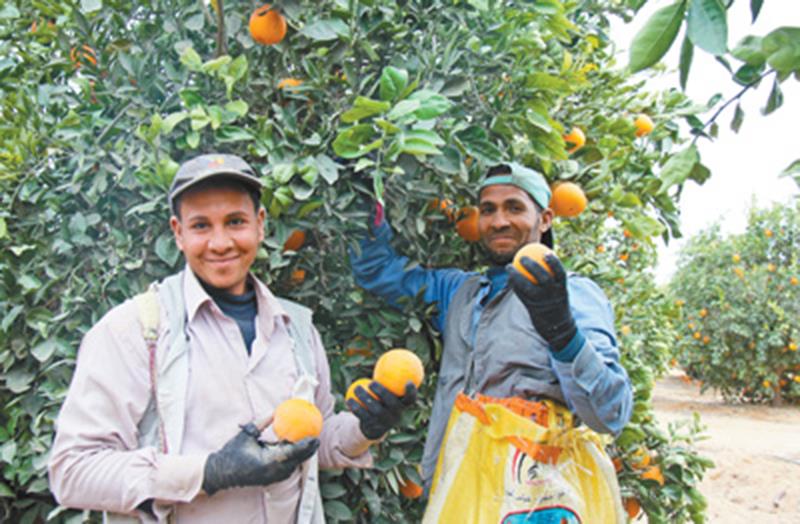 從開羅出發(fā),沿著尼羅河三角洲邊緣的公路一路北上,道路兩旁的農(nóng)田一望無垠,綠意盎然。來到位于布海拉省的馬格拉比果園,一排排橙樹上,金色的果實掛滿枝頭。果農(nóng)們背著編織袋,手持小剪刀,利落地采摘著臍橙和巴倫西亞橙(榨汁橙)。經(jīng)過充沛的陽光照射,鮮橙果實飽滿;果農(nóng)臉上洋溢著笑容,不遠處,一輛輛裝滿鮮橙的卡車整裝待發(fā)。