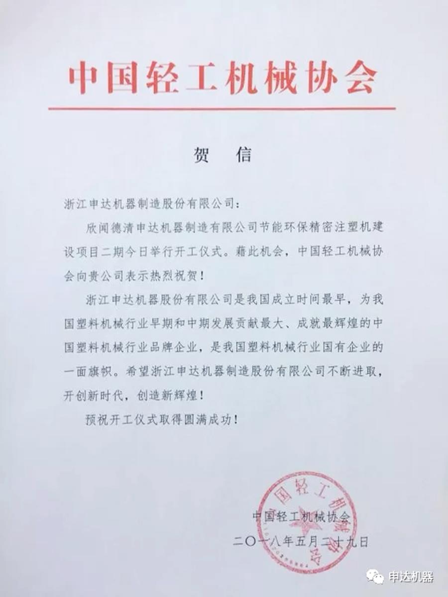 輕工機械協(xié)會也發(fā)來賀信?。?/span>