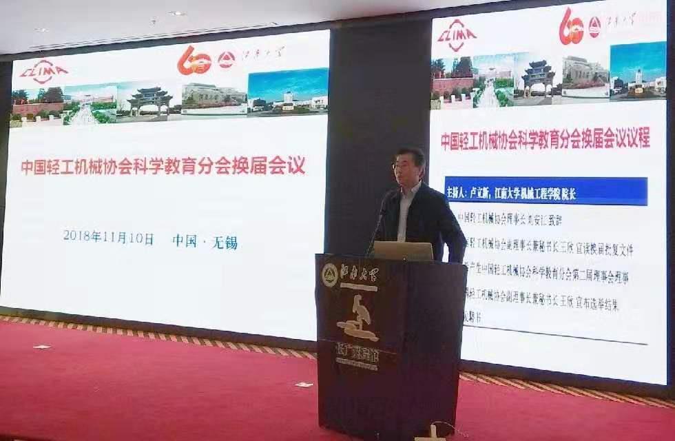 2018年11月10日上午,中國輕工機械協(xié)會科學教育分會換屆會議在江南大學舉辦。此次會議由江南大學機械工程學院盧立新院長主持,來自各大科研院校和相關企業(yè)的約70多人參加了會議。