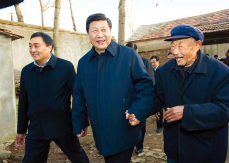 2013年11月24日至28日,中共中央總書記、國家主席、中央軍委主席習(xí)近平在山東考察。 這是25日下午,習(xí)近平在地處沂蒙老區(qū)的臨沭縣曹莊鎮(zhèn)朱村親切地拉著83歲的“老支前”王克昌的手去他家看望。 新華社記者 謝環(huán)馳/攝