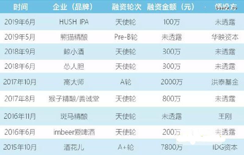 精釀啤酒領(lǐng)域融資情況匯總