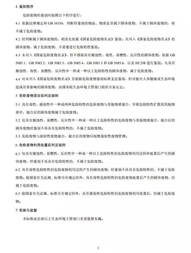 根據(jù)公告顯示,該標(biāo)準(zhǔn)將于2020年1月1日起實施,自實施之日起,《危險廢物鑒別標(biāo)準(zhǔn) 通則》(GB 5085.7-2007)廢止。以下為全文: