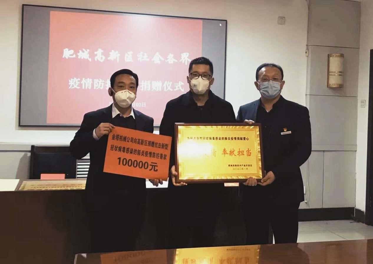 抗擊疫情,人人有責(zé),肥城金塔機械有限公司在認(rèn)真動員員工做好疫情防控的同時,捐款10萬元,助力抗擊新型冠狀病毒感染的肺炎疫情。作為民營企業(yè),將義不容辭承擔(dān)一份社會責(zé)任,希望能與全國人民一起,守望相助、共克時艱,為早日打贏這場沒有硝煙的疫情防控戰(zhàn)役貢獻(xiàn)一份應(yīng)有的力量,傳遞正能量。