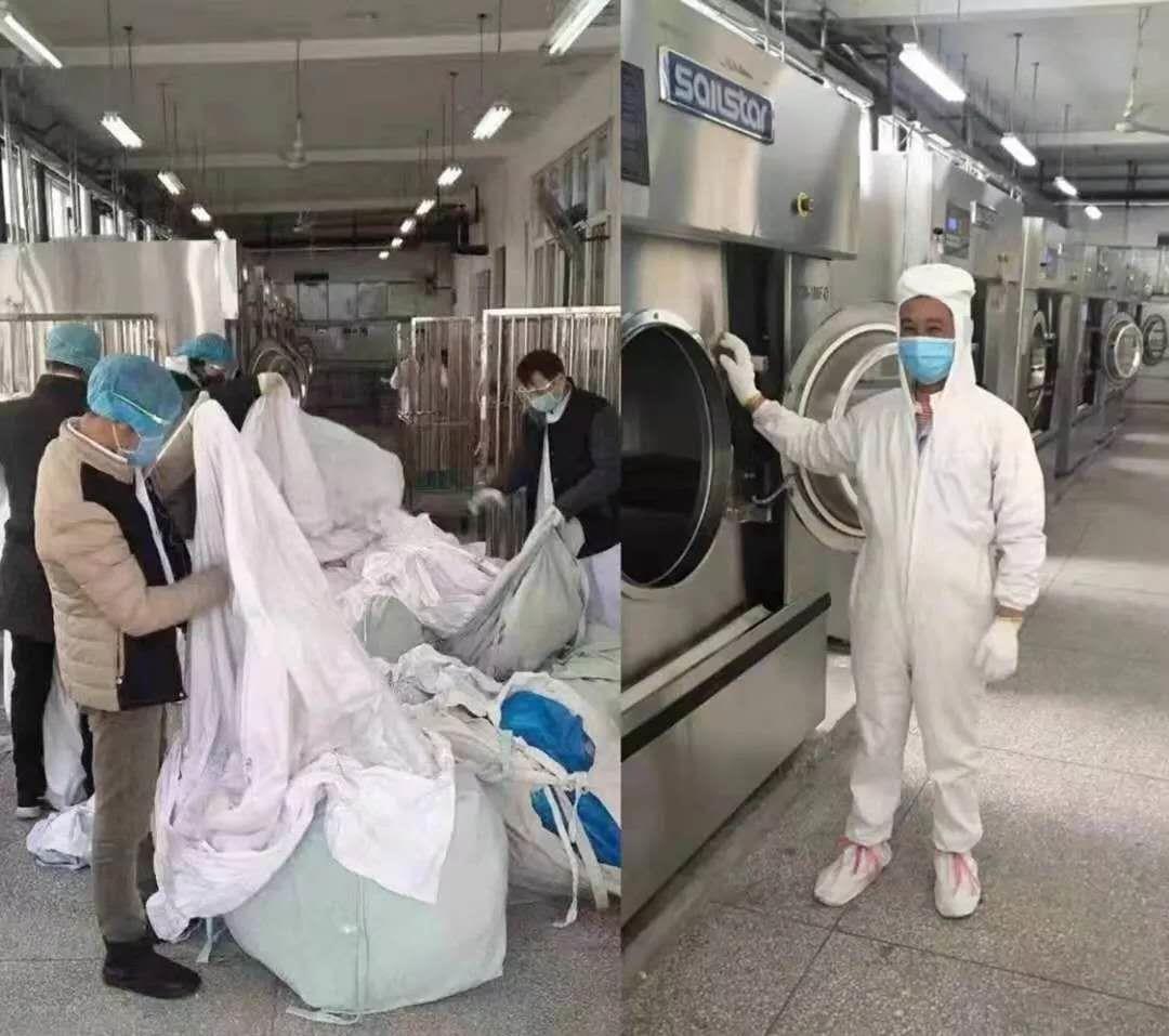 武漢市同濟(jì)醫(yī)院是武漢規(guī)模最大的醫(yī)療機(jī)構(gòu),其洗衣房購置了上海航星機(jī)械(集團(tuán))有限公司的全套洗滌設(shè)備:隔離式洗脫機(jī)及常規(guī)洗脫機(jī)等24臺(tái)水洗設(shè)備,18臺(tái)烘干設(shè)備,6臺(tái)熨平機(jī),2臺(tái)折疊機(jī)以及30個(gè)燙臺(tái);而金銀潭醫(yī)院(武漢市傳染病醫(yī)院)洗衣房全部設(shè)備亦為航星品牌。