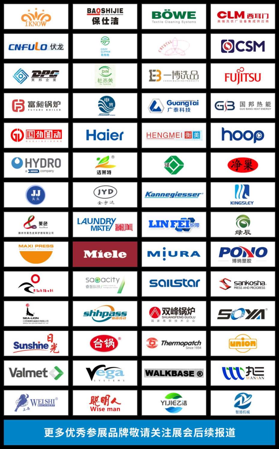 截止至目前,已經(jīng)有凱尼基莎、三幸社、瑋珈、美諾、鉑維、海獅、威士、航星、川島、頡保申光、海爾、中施、瀾美、丸三、匯布、睿智、日光等近百家行業(yè)翹楚將參加2020中國(guó)洗滌展。