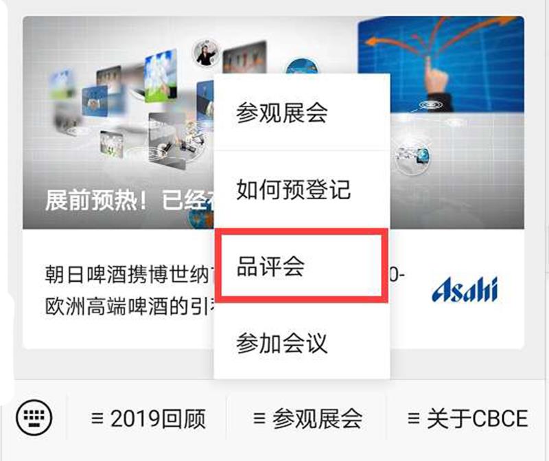 CBCE公眾號主頁,點擊“參觀展會”,選擇“品評會”,即可獲得免費品嘗布魯塞爾國際挑戰(zhàn)賽16款獲獎作品的機會