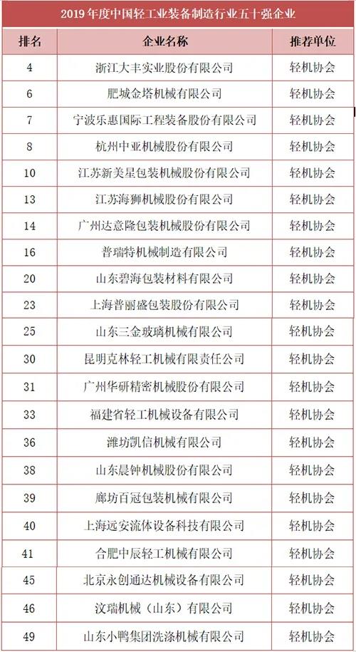 五十強--2019年度中國輕工業(yè)裝備制造行業(yè)五十強榜單