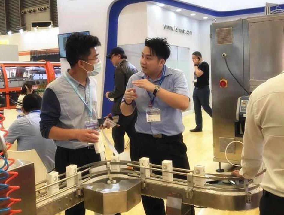紙基包材及縱封膠條自動(dòng)接駁系統(tǒng)。吸引了大量專業(yè)買家駐足參觀。