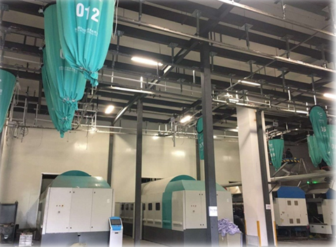 隨著多條洗衣龍的中央洗滌工廠的不斷涌現(xiàn),為了提升整廠效率,共用穿梭車系統(tǒng)的設(shè)計(jì)越來越普遍。脫水布草的緩存能力、穿梭車的運(yùn)行速度、控制系統(tǒng)響應(yīng)速度將更大程度的決定系統(tǒng)效率。威士高效穿梭車系統(tǒng)采用快速軌道、自研高速控制系統(tǒng)、主動(dòng)安全防碰撞系統(tǒng)確保了整體效率的提升。