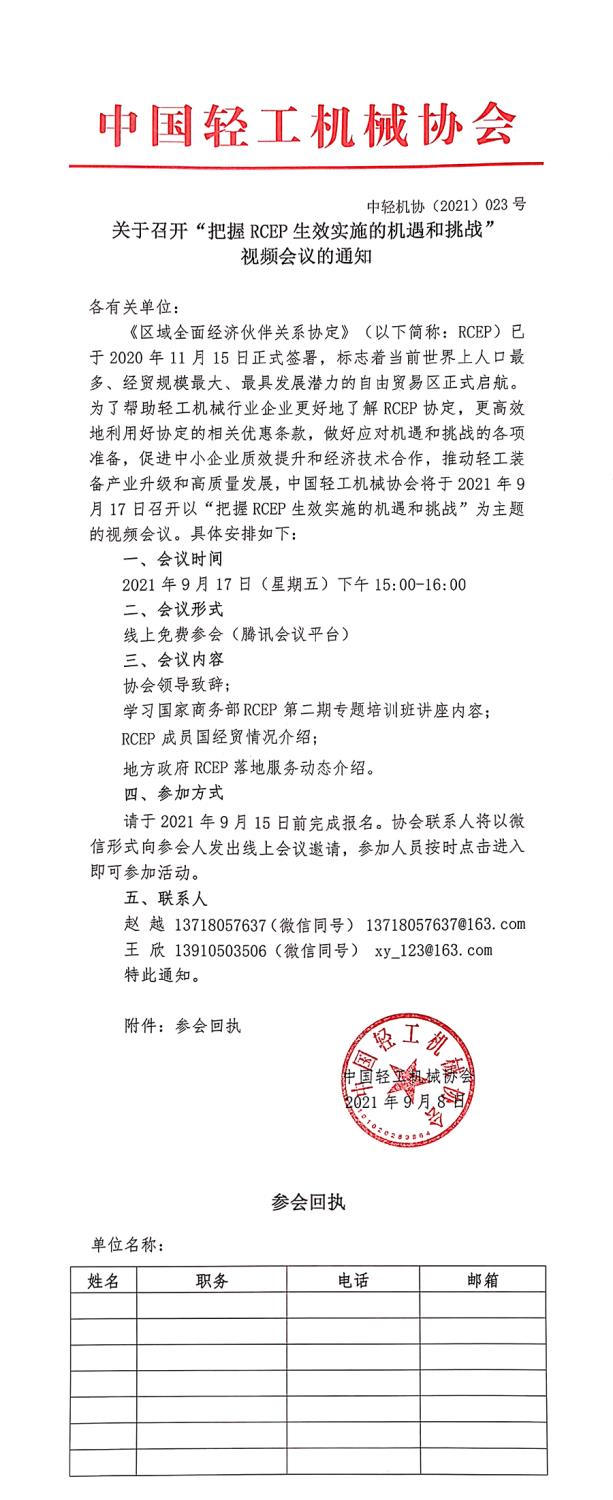 關(guān)于召開“把握RCEP生效實施的機遇和挑戰(zhàn)”視頻會議的通知