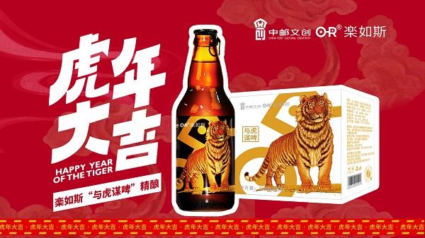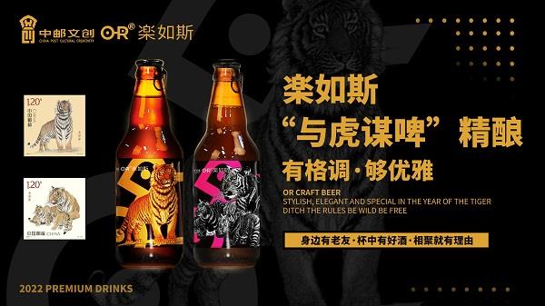 此次,樂如斯聯(lián)名中國郵政文創(chuàng)以2022虎年生肖郵票為創(chuàng)作靈感。精準(zhǔn)提取了由著名畫家、國家一級美術(shù)師馮大中先生所創(chuàng)作的《壬寅年》特種郵票中“虎”的元素和精髓,傾力打造“與虎謀啤”精釀啤酒系列文創(chuàng)產(chǎn)品。