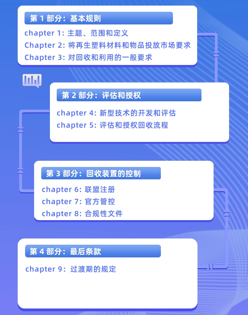 回收料生產(chǎn)的合規(guī)審理需要提供大量的文件支持,而本次新法規(guī)的指南說(shuō)明文本中羅列了各環(huán)節(jié)所必要呈現(xiàn)的信息,并展示了相應(yīng)的格式和范例。其內(nèi)容涵蓋回收裝置,回收方的識(shí)別鑒定,EFSA文檔,回收方案流程圖,過(guò)程SOP匯總列表和質(zhì)量評(píng)估文件等多個(gè)方面,為申請(qǐng)方提供了清晰的指引。