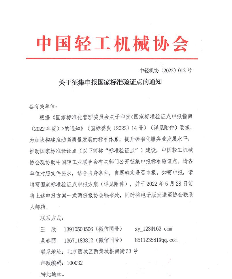 關(guān)于征集申報國家標(biāo)準(zhǔn)驗證點的相關(guān)文件