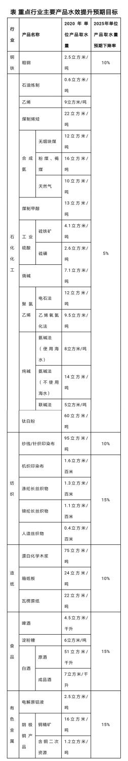 注:1.2020年單位產(chǎn)品取水量為全國(guó)平均值,由相關(guān)行業(yè)協(xié)會(huì)及研究單位測(cè)算。
